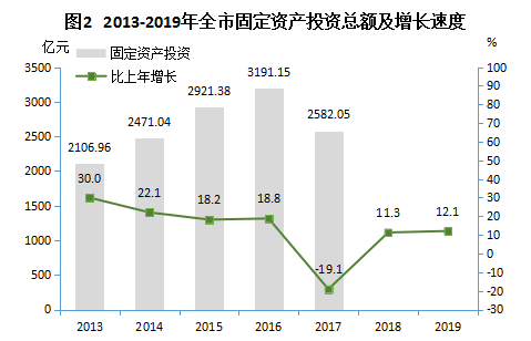 全年固定资产投资(不含农户投资)比上年增长12.1%,高于全省平均增幅1.5个百分点。其中,5000万元以上项目投资比上年增长13.3%。分产业看,第一产业投资比上年增长102.0%;第二产业投资比上年增长9.5%;第三产业投资比上年增长12.5%。