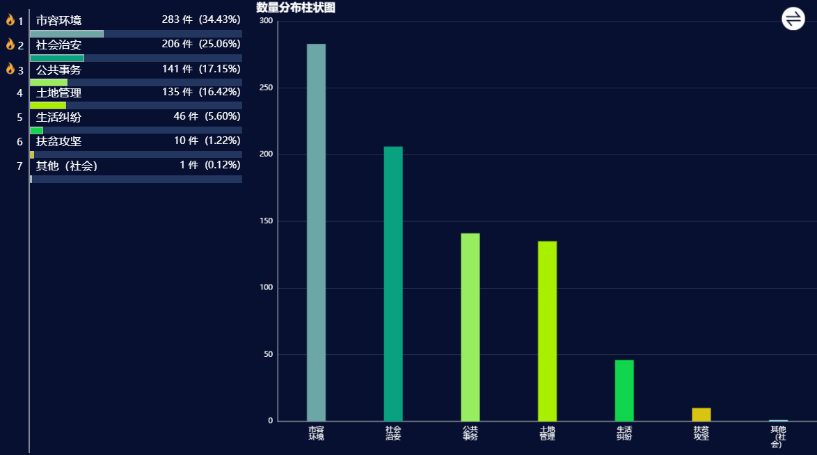 社会管理类诉求中,反映较为集中的是市容环境、社会治安问题。市容环境类反映较多的是安全文明施工问题;社会治安问题反映较多的是信访问题。