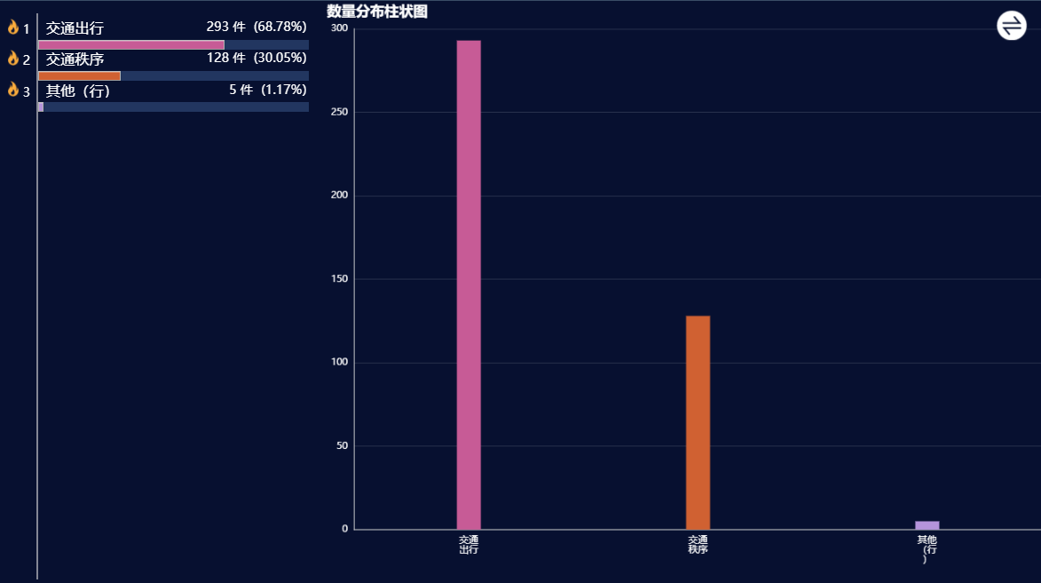 出行类诉求中,主要为交通出行问题和交通秩序问题。交通出行类诉求反映较多的是道路施工、通行问题;交通秩序类诉求以占道停车问题为主。