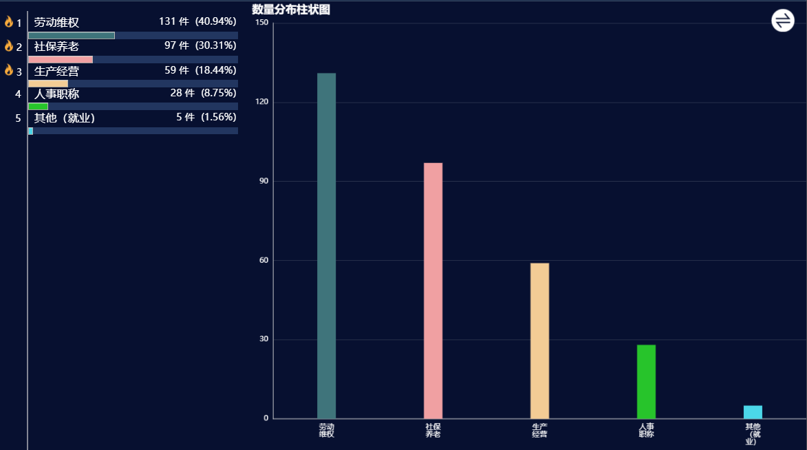 就业类诉求中,反映较为集中的是劳动维权和社保养老。劳动维权类反映较多的是拖欠工资问题;社保养老类诉求以社保服务为主。