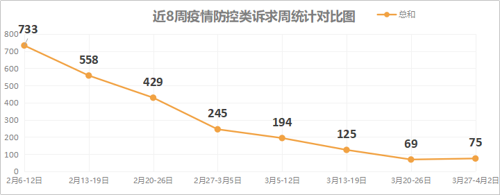 2021年3月27日0点至2021年4月2日24点,宜昌市12345市民服务热线共收到群众诉求4269件。其中,省12345来件25件,市民通过宜昌市人民政府网、宜昌发布微博微信、人民网等网络媒体反映诉求178件。较上周有所下降。