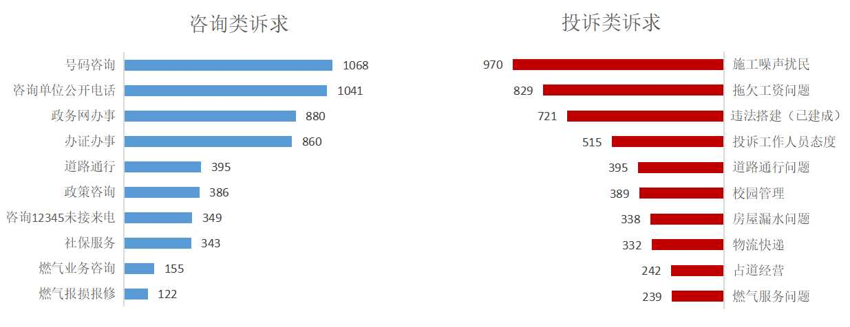 2022年10月,市城运中心(筹,下同)共受理群众诉求76030件,较9月上升9.98%,群众满意率为99.83%。其中,与新冠疫情相关的诉求有44409件,占比58.40%。非疫情类咨询主要集中在号码咨询、咨询单位公开电话、政务网办事、办证办事等方面。投诉主要集中在施工噪声扰民、拖欠工资、违法搭建、工作人员态度和道路通行等方面。