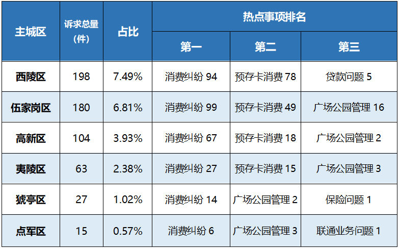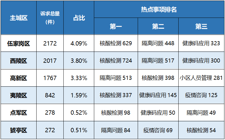 以主城区为单位,疫情防控类诉求的受理情况如下: