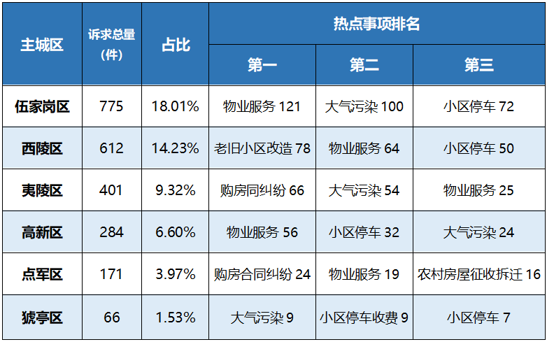 以主城区为单位,居住类诉求的受理情况如下: