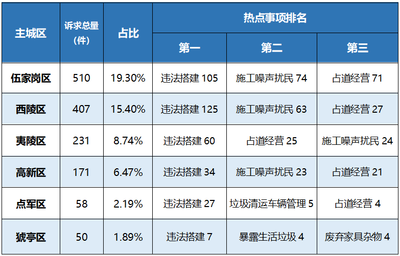 以主城区为单位,城市管理类诉求的受理情况如下: