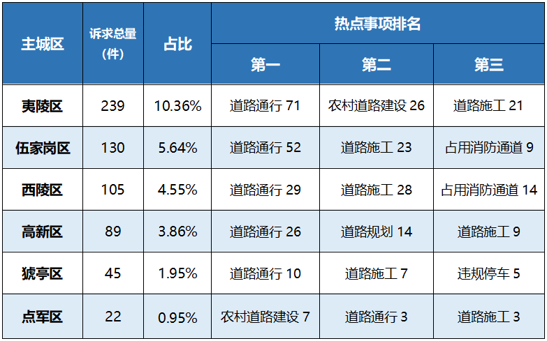 以主城区为单位,出行类诉求的受理情况如下: