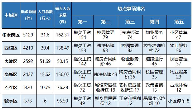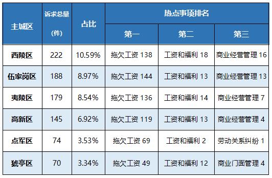 以主城区为单位,就业类诉求的受理情况如下: