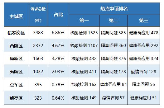 以主城区为单位,疫情防控类诉求的受理情况如下: