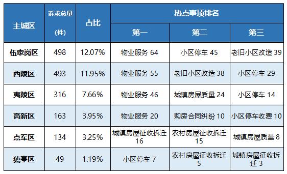 以主城区为单位,居住类诉求的受理情况如下: