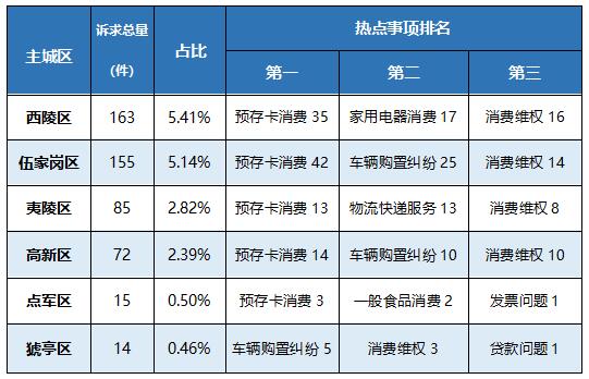 以主城区为单位,生活类诉求的受理情况如下: