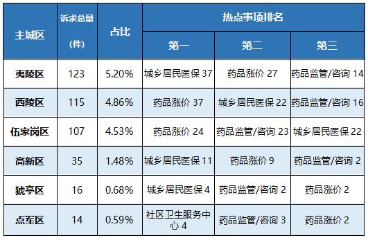以主城区为单位,医疗类诉求的受理情况如下: