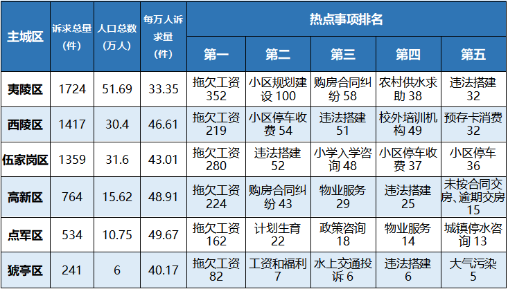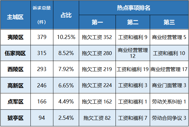 以主城区为单位,就业类诉求的受理情况如下:
