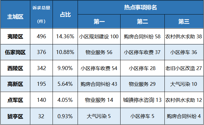 以主城区为单位,居住类诉求的受理情况如下: