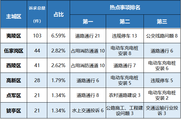 以主城区为单位,出行类诉求的受理情况如下: