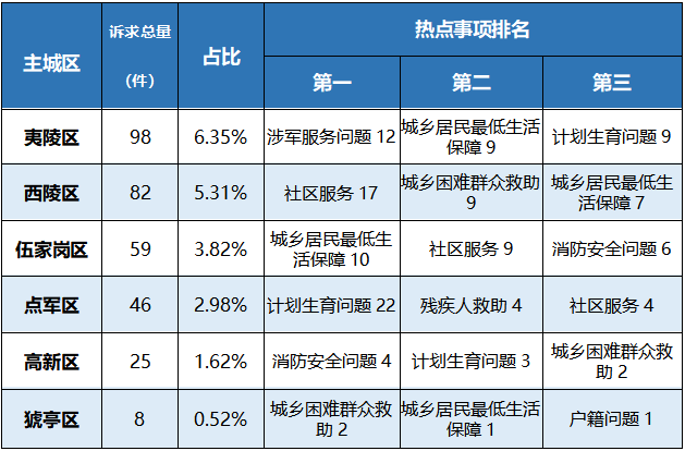主城区为单位,生活类诉求的受理情况如下: