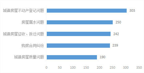 住房房产类诉求2240件,占比6.6%,环比增长32.4%。其中城镇房屋不动产登记问题303件,占比13.53%;房屋漏水问题250件,占比11.16%;城镇房屋征收拆迁问题242件,占比10.8%;购房合同纠纷239件,占比10.67%;城镇房屋质量问题190件,占比8.48%。
