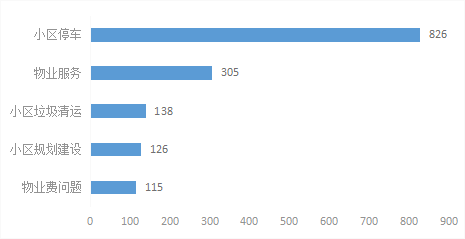 小区管理类诉求2159件,占比6.36%,环比增长24.9%。其中小区停车管理826件,占比38.25%;物业服务305件,占比14.13%;小区垃圾清运问题138件,占比6.39%;小区规划建设126件,占比5.84%;物业费问题115件,占比5.33%。