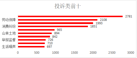 (三)本月群众诉求投诉类问题(中类)主要集中在:住房房产、劳动保障、小区管理、消费纠纷、道路问题、山林土地争议、建筑施工噪声、举报监督、街面秩序管理、生活噪声等方面。