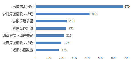 住房房产类诉求2781件,占比7.76%,环比上涨30.07%。其中房屋漏水问题670件,占比24.09%;农村房屋征收拆迁问题413件,占比14.85%;城镇房屋质量问题238件,占比8.56%;购房合同纠纷232件,占比8.34%;城镇房屋不动产登记问题215件,占比7.73%;城镇房屋征收拆迁问题197住房房产类诉求2781件,占比7.76%,环比上涨30.07%。其中房屋漏水问题670件,占比24.09%;农村房屋征收拆迁问题413件,占比14.85%;城镇房屋质量问题238件,占比8.56%;购房合同纠纷232件,占比8.34%;城镇房屋不动产登记问题215件,占比7.73%;城镇房屋征收拆迁问题197件,占比7.08%;老旧小区改造问题178件,占比6.4%。