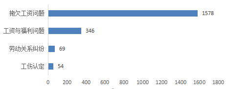 劳动保障类诉求2108件,占比5.88%,环比上涨18.23%。其中拖欠工资问题1578件,占比74.86%;工资和福利问题346件,占比16.41%;劳动关系纠纷69件,占比3.27%;工伤认定问题54件,占比2.56%。