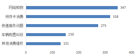 消费纠纷类诉求1851件,占比5.17%,环比下降2.83%。其中网络购物维权347件,占比18.75%;预存卡消费问题318件,占比17.18%;快递服务问题273件,占比14.75%;车辆购置纠纷150件,占比8.1%;其他消费维权131件,占比7.08%。