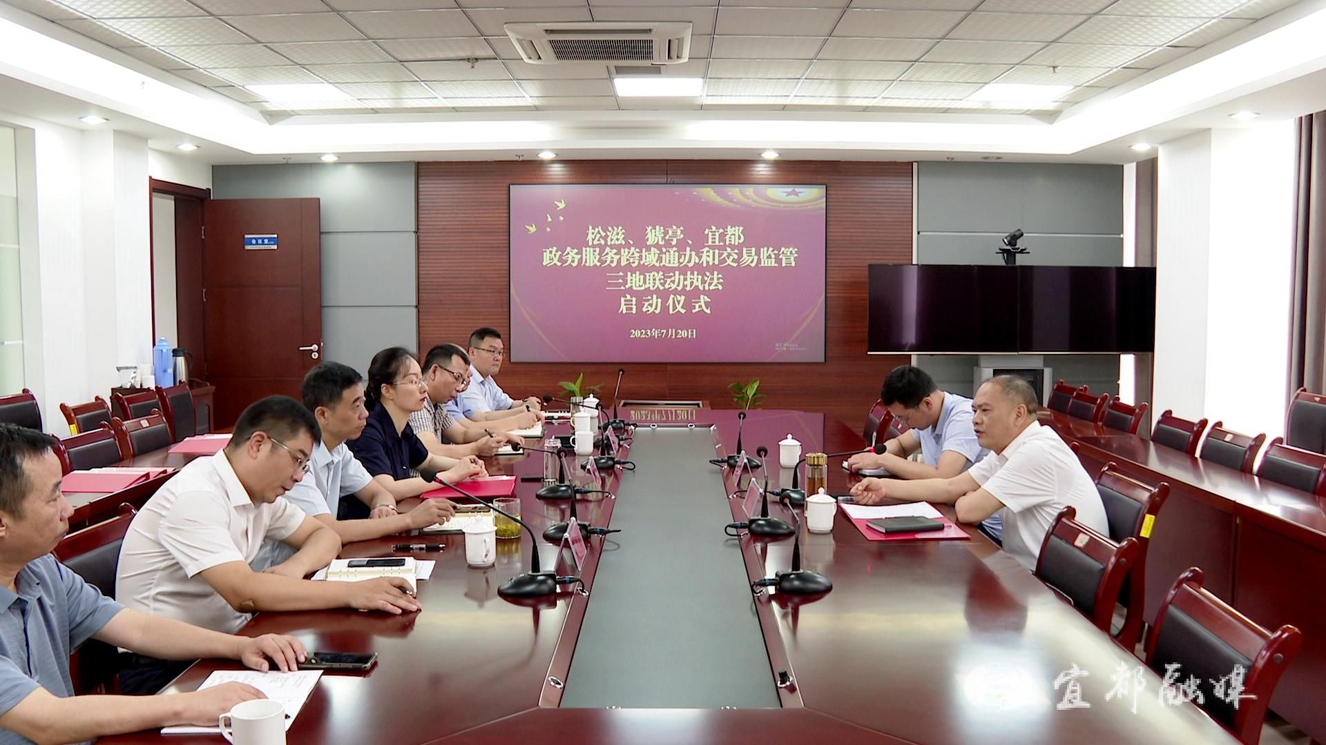7月20日,松滋、猇亭、宜都三地政务服务“跨域通办”和交易监管联动执法协作在宜都正式启动。