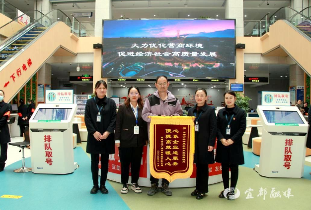 “这面锦旗我们早就想送来了,宜都万达以及所有入驻的商家都非常感谢宜都政务服务中心的热情服务……”11月22日下午,宜都万达广场商业管理有限公司营运部经理吴海海将一面印有“心系企业送服务 便捷高效暖人心”的锦旗送到宜都市政务服务中心。
