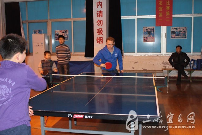 Yesterday, in Yichang Forum the reporter noticed a post say that an American named Scott challenges master-hand ping-pong players in Yichang to compete and learn from each other by exchanging views. Through the internet, the reporter got in touch with Scott and met him in Wanda Community.