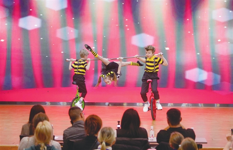 On April 1, Russian tourists take part in a cultural exchange at the Xiling Campus of Yichang Foreign Language Primary School.