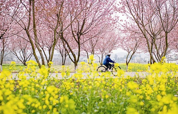 On March 10, in Yangjinfan Village, Zhicheng Town, Yidu City. The cherry blossoms on the Cherry Blossom Avenue vie for attention as they burst into full bloom, while vast fields of rapeseed flowers blossom in unison on both sides of the avenue. Together, they create a picturesque spring scene that resembles a poetic painting. This mesmerizing sight has enticed a multitude of people to immerse themselves in the sea of flowers while capturing cherished moments through photography. As temperatures gradually climb, spring flowers are progressively blossoming throughout various regions in Yidu. Visitors flock to Yidu to revel in the enchanting beauty of spring, indulging in the delights of flower appreciation and leisurely exploration. (Correspondents/Cao Lida & Rong Xuan)
