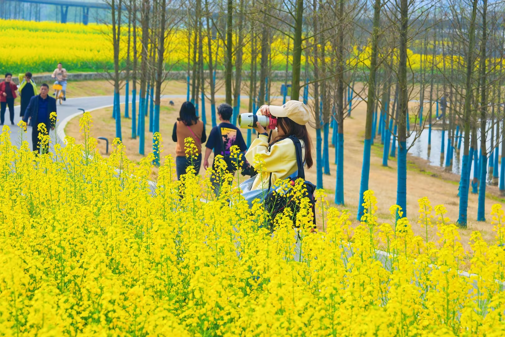 Crowds are seen enjoying themselves at the Juanqiaohe Wetland Park in Dianjun District. In recent days, the weather in Yichang has been clear and sunny, driving Yichang people to venture outdoors, under the sunshine, admiring the beautiful scenery, and smelling the fragrance of flowers in parks and scenic areas, all in search of the beauty of spring. (Correspondent/Yu Xuan)