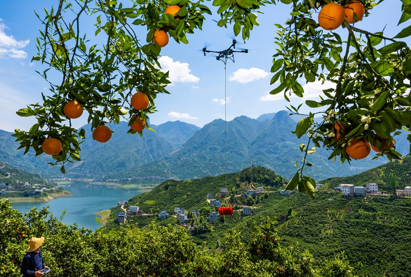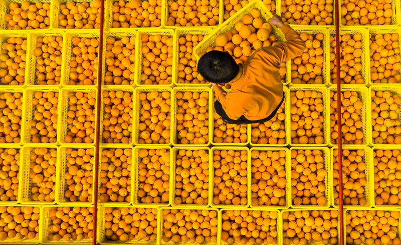 Clusters of ripe, luscious navel oranges hang from branches laden with full blooms, a wonderful view of the Three Gorges along the Yangtze River. As the mainstay of farming oranges, Zigui County, northwestern Yichang City of Hubei Province, has in recent years refined the fruit variety by cultivating new breeds of navel oranges that ripen in spring, such as “Lunwan” and “Red Flesh.” In contrast to the traditional supply in autumn and winter, the new produce goes to market to tickle people’s palate when the season is otherwise slack. The county has reported having developed over 150,000 acres of spring oranges, with an annual yield exceeding 300,000 tons. Orange economy has become the pillar to shore up local growth and prosperity. (Xinhua/Zheng Jiayu)