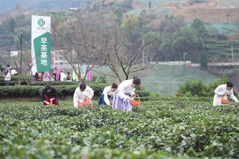 On February 27, the early-harvest tea base ofYichang Tea Group Co Ltdin Zhongbazi Village, Maoping Town, Zigui County, officially opened for the spring tea-picking season. (Sanxia Daily: Reporter/Tan Yangchenlei)