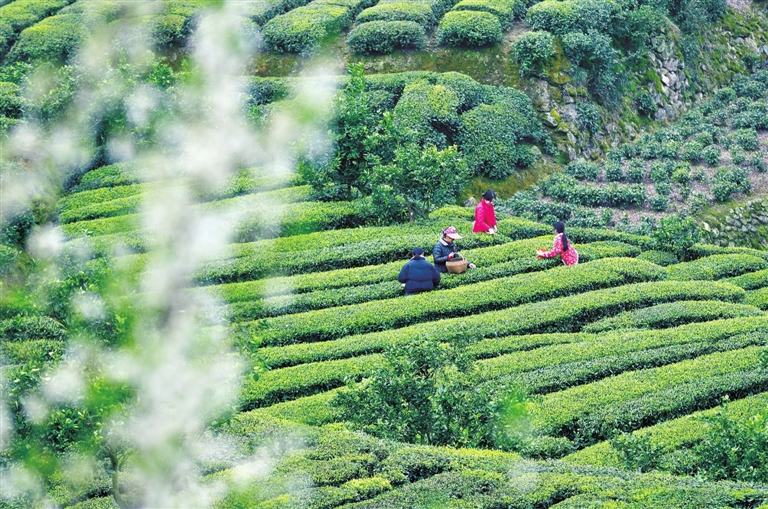 On March 22, tea farmers were picking “Pre-Qingming Tea” at an ecological tea plantation in Songshu’ao Village, Maoping Town, Zigui County. As the Qingming Festival approaches, the harvesting season is peaking across Zigui’s 120,000 mu (about 8,000 hectares) of tea plantations. (Sanxia Daily: Correspondent/Wang Huifu)