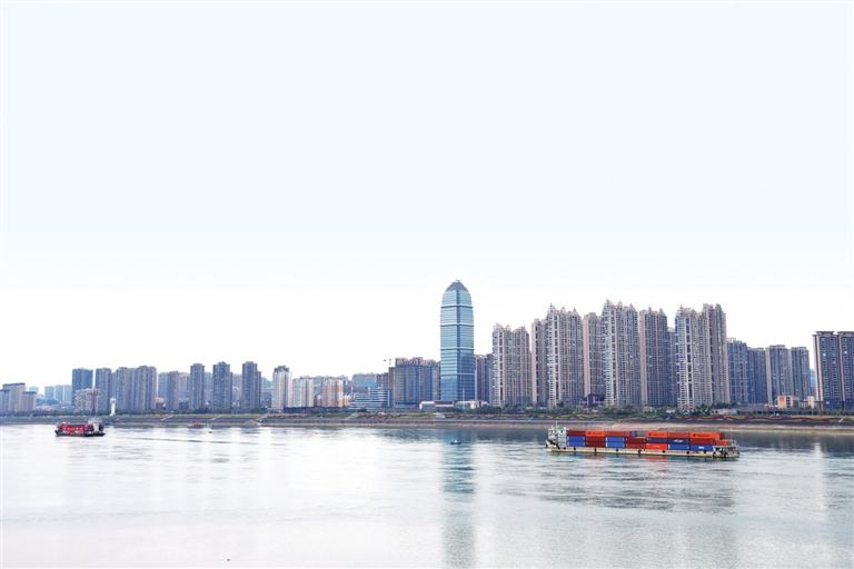 On April 6, cargo vessels carrying supplies navigate the Yichang section of the Yangtze River.