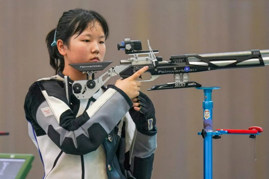 Liu Yafei from Yichang Sports School, together with her teammate Zhu Mingshuai, won the bronze medal 16-0 in the 10M AIR RIFLE MIXED TEAM JUNIOR in Cairo, Egypt, Oct. 21, 2022, ending her competitions in Cairo. She won one silver and one bronze.