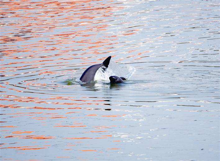 The picture shot on November 9 shows finless porpoises surfaced in the lower reach of Gezhouba on the Yangtze River, where the charmingly naive animals are often found playing in the water, catching the eyes of people. Xinhua News Agency (Photo by Wen Zhenxiao)