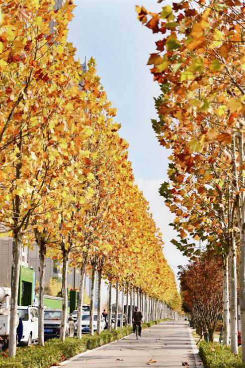 On November 24, the reporter saw a fairyland at the extension of Yanjiang Road with golden trees on either side in Yichang City. In recent years, Yichang has widely introduced colored-leaf trees in the city’s landscaping so that citizens can enjoy the foliage in different seasons. (Photo by Reporter Huang Xiang)