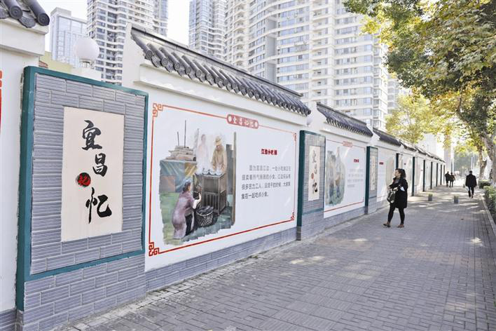 Each construction site in Yichang City has become a window to spread civilization, and each community “creates” a happy and harmonious prospect. The picture shows “Yichang Memory” painted on the wall of a construction space at the Jiumatou in the urban area, attracting citizens to stop and watch. (Photo by reporter Huang Xiang)