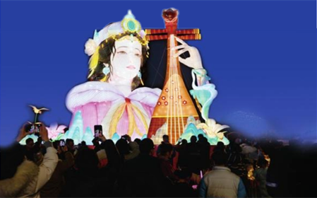 This year, Yichang holds a lantern show at Binjiang Park to celebrate the Year of the Rabbit. The most attractive lantern is 12-meter-tall one called “Wang Zhaojun Returning Home”. Wang Zhaojun, one of the Four Beauties in ancient China, was born in Yichang. (Photo/Huang Xiang)