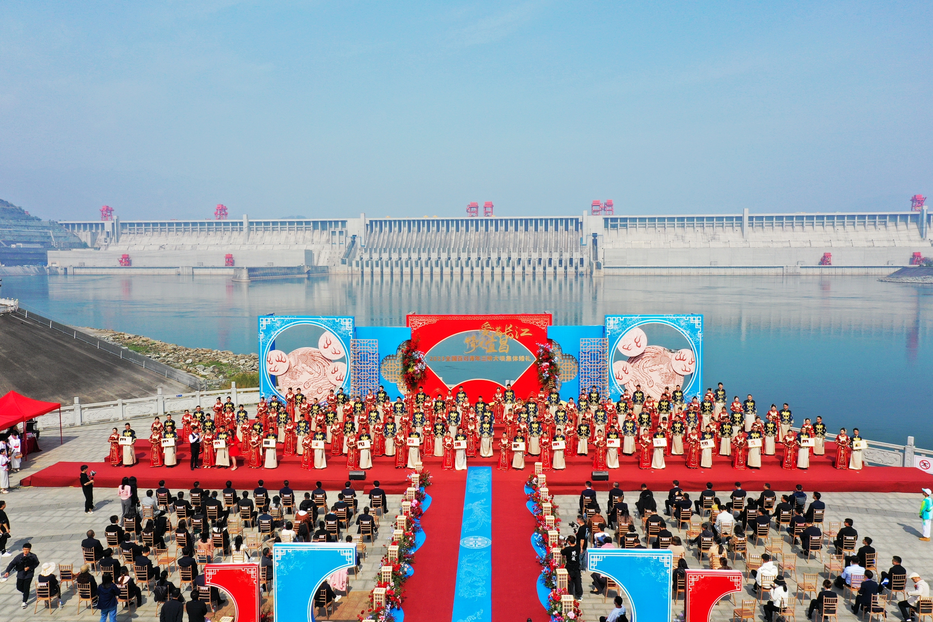 “The 2023 River&Dam-Witnessing National Youth Group Wedding” was held at the Closure Memorial Park near the Three Gorges Dam on March 31. Seventy newlywed couples from 11 provinces made a vow of love: to inherit fine family traditions, exert tremendous influence on new morality and custom, and strive to make most of the prime of life. The group wedding is one of the activities of the Second “330” Sanxia International Talents’ Day in Yichang co-hosted by 5 public institutions. (Reporter/Zheng Jianjie, Correspondent/Li Jiaqi)