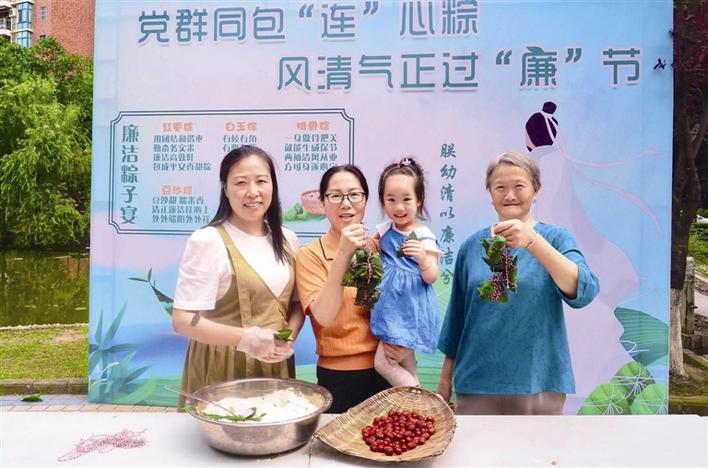 Party members and cadres in Changning Community, Maoping Town and residents of Xincheng Huafu Residential Complex make zongzi together to welcome the upcoming Dragon Boat Festival on June 15.