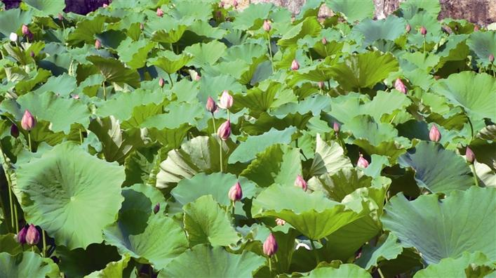 Wave upon wave, the lotus flowers glow in red; layer upon layer, their countless petals amount to a thousand. Recently, the musella lasiocarpa in full bloom at the Yuquan Temple is all the more enchanting as delicate lotus flowers dotted among the lotus leaves. With two pistils standing side by side, the musella lasiocarpa has up to 3000 petals, and the flowering time lasts for nearly 3 months. (Reporter/You Man, Correspondents/Fang Zixuan, Photographer/Peng Danfeng)