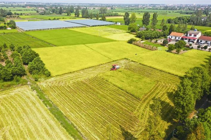 Currently, the harvest season has arrived for the 333 hectares of ratoon rice in Dangyang city. The large harvesters, in Qianjin village, Herong town, are operating at full capacity in the rice fields, separating the grains from the rice ears for storage. The local area has adopted an order-based planting model, ensuring a market for the rice while it is still in the field. It is reported that the first crop yield of the ratoon rice has reached about 9,000 kilograms per hectare, while the second crop can yield 3,750 kilograms per hectare. (Reporter/You Man; Correspondent/Li Xinyi, Photo by Shi Lei)