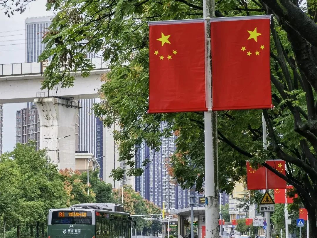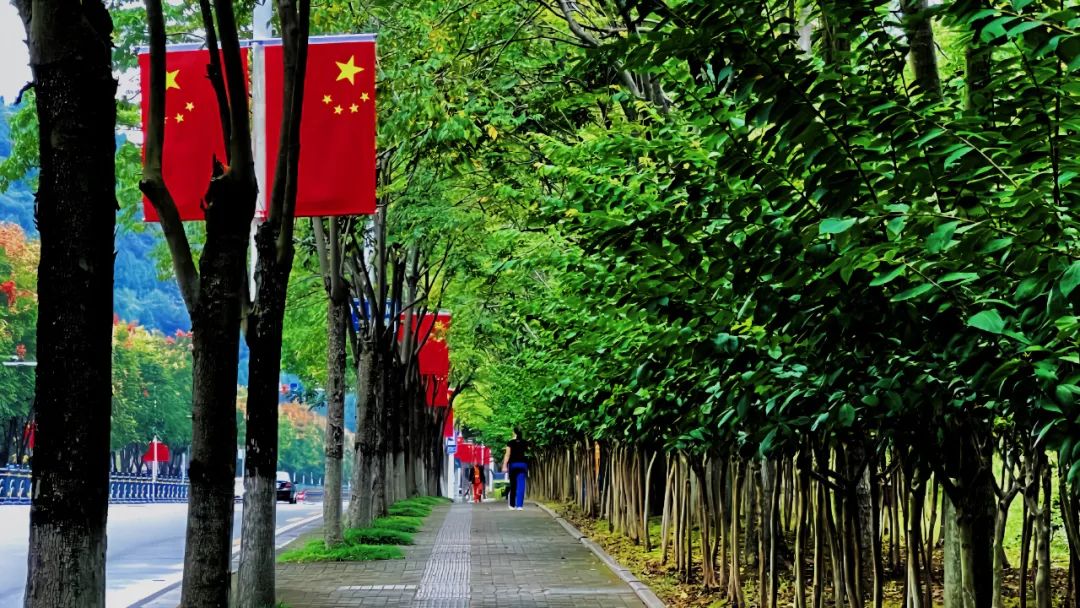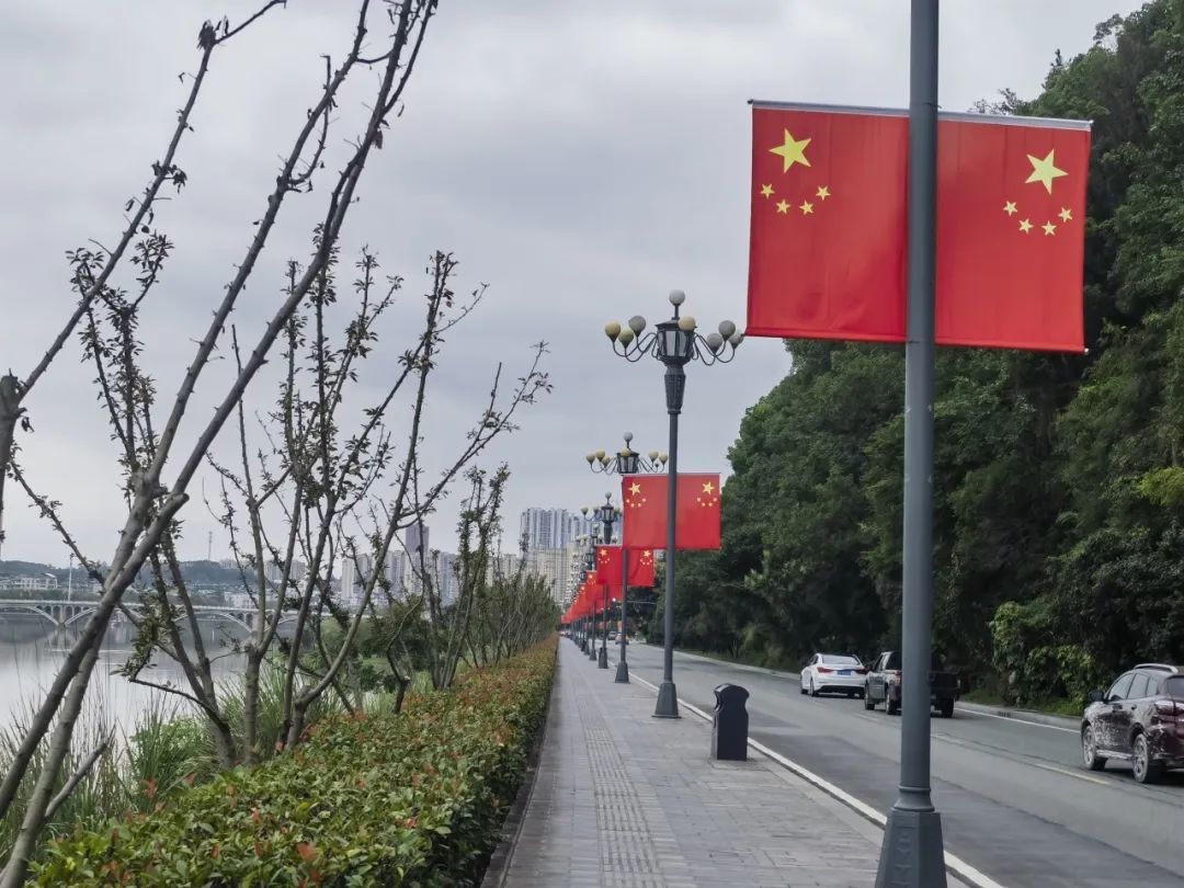 As the National Day approaches, national flags were seen waving throughout Yichang's streets and avenues, paying a heartfelt tribute to our motherland with a splendid red landscape.