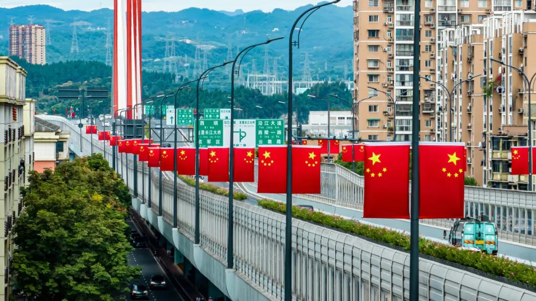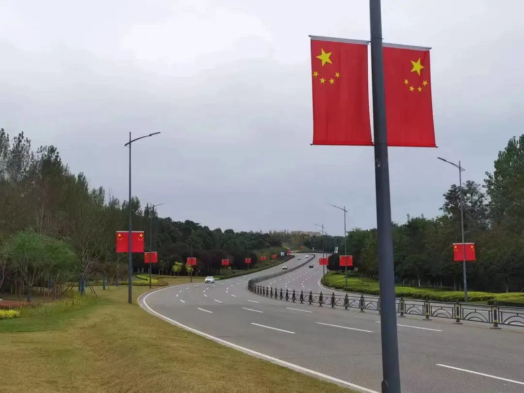 Beginning from the mid-September, the municipal urban management committee organized various urban management departments at district-level to hang the national flags on the main and secondary streets in the urban area, expressways, and the three cross-river bridges. To avoid disrupting daytime traffic, most of the flag installation was carried out during the night. All the flags were displayed appropriately according to the Law of the People's Republic of China on the National Flag, presenting a neat, dignified, and aesthetic cityscape.