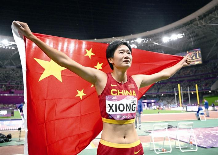 Yichang athlete Xiong Shiqi celebrates her victory after the competition.