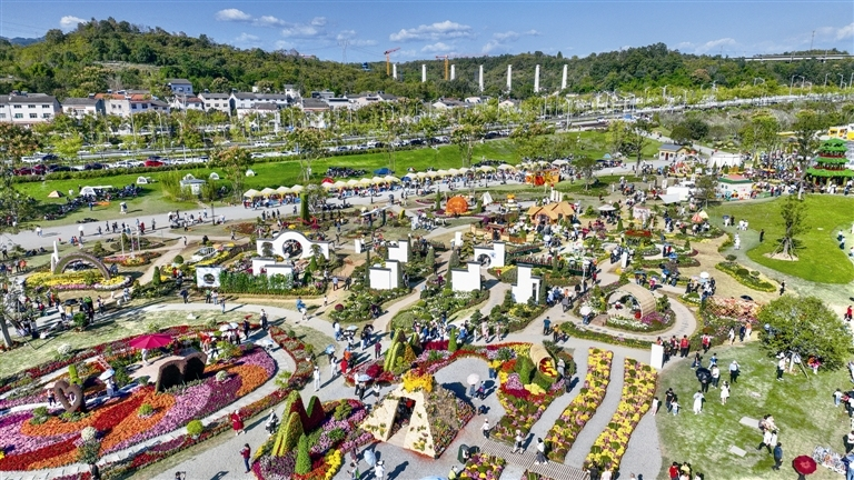 On October 29, Huawan in Qiaobian Town, Dianjun District was bustling with the 38th Yichang Chrysanthemum Show, and attracted a large number of visitors. The show presents 400,000 pots of chrysanthemums in total, including 21 sets of large-scale chrysanthemum assemblages, over 200 chrysanthemum works of art, and over 2,000 pots of exquisite chrysanthemum varieties, and it will continue until mid-to-late November. For the sake of better experience, visitors are suggested to arrange their visits during off-peak hours and by buses direct to the show. (Reporter /Huang Xiang, Photo by Reporter/Lin Xiao)