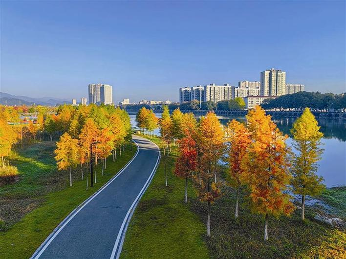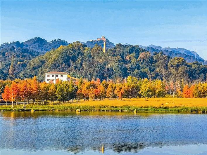 In early winter, the warm sunlight brings a golden touch to the banks of Jü River in Yuan’an County. (Photo by Correspondent/Xu Shenghua)