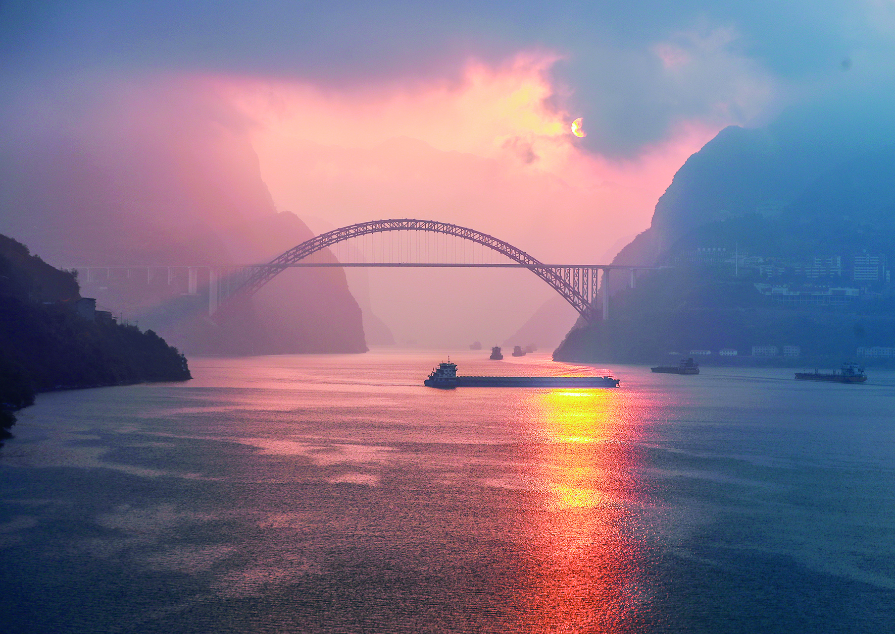On December 6, ships were sailing through the confluence of the Xiangxi River in Xiling Gorge section of Zigui County. (Xinhua/Wang Gang)